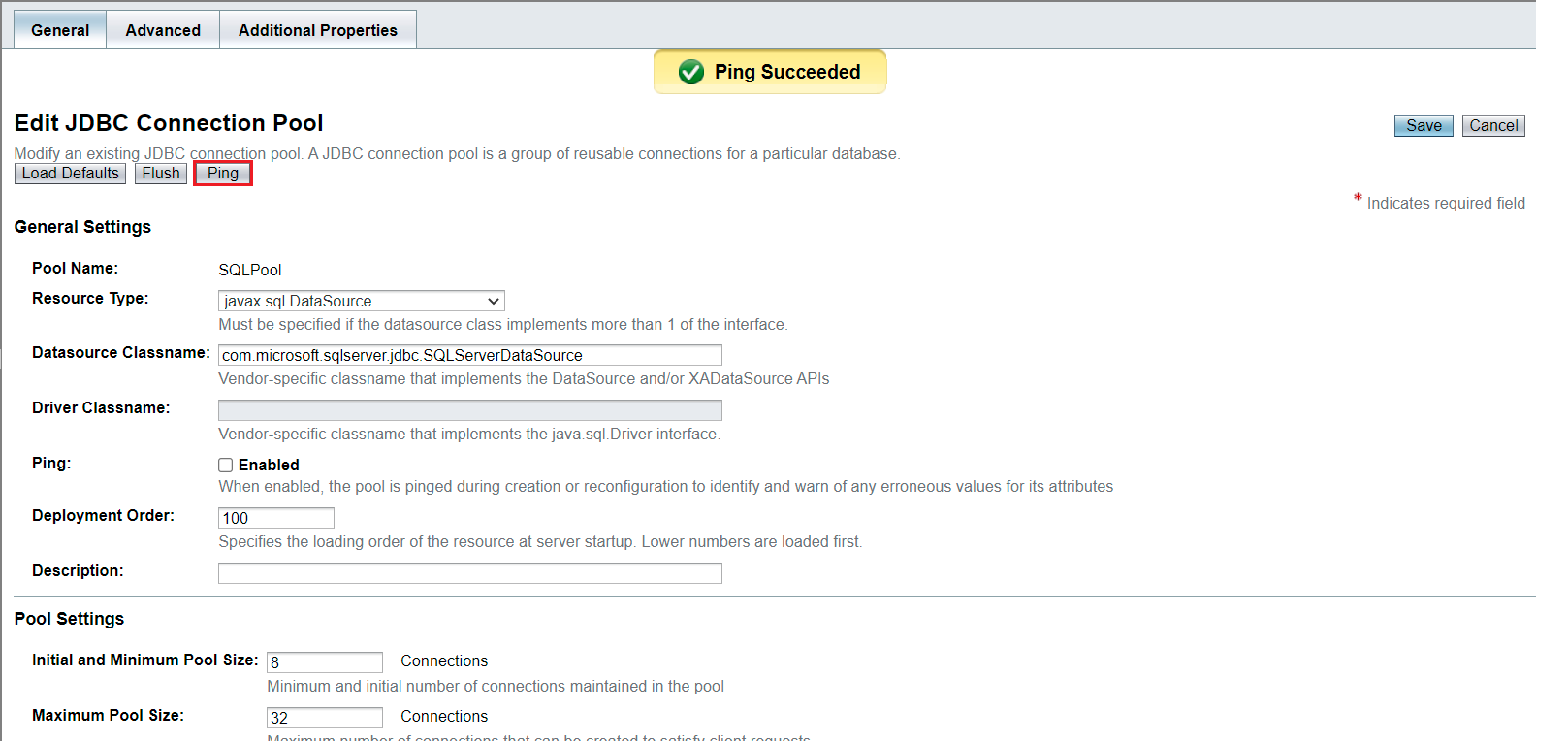 Sau khi hoàn thành click vào SQLPool và check ping ra chữ Ping Succeeded như ảnh dưới là thành công